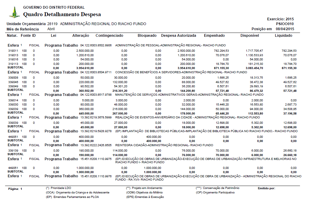 - Implantação de biblioteca pública no Riacho Fundo I – R$ 0,00;