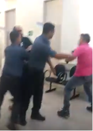 Os seguranças foram acionados para conter o policial, começa então o bate boca entre médico e o policial.