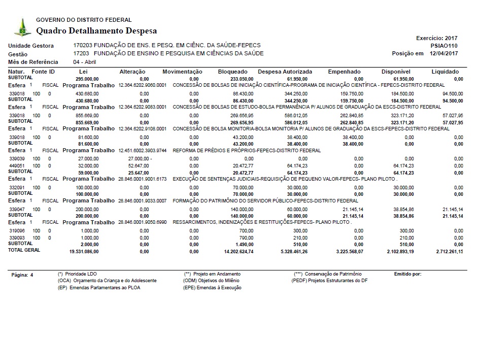 É o caso das cidades como Vicente Pires, com orçamento de R$ 10.000.000,00 em média; Núcleo Bandeirante, R$ 10.296.429,00; Riacho Fundo I, R$ 10.728.523,00 entre as mais de dez cidades pesquisadas em nosso levantamento no Quadro de Detalhamento de Despesas (QDD) do Governo do Distrito Federal.