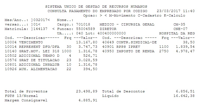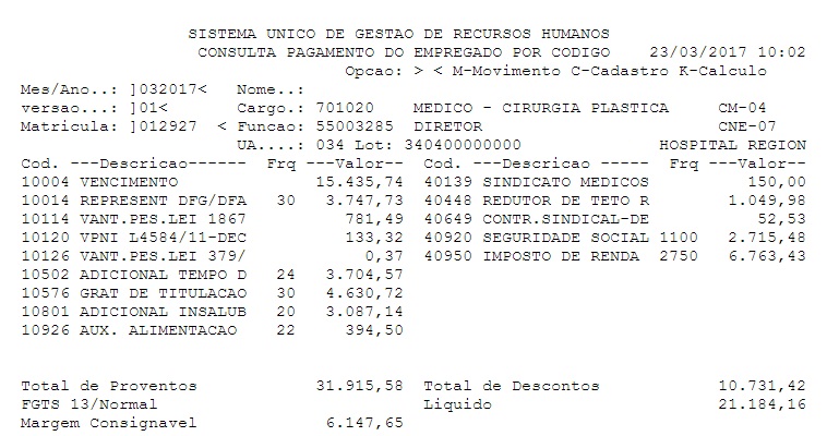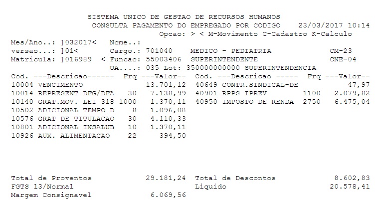 Com remuneração média de R$ 16 mil por profissional, de acordo com o balanço da Secretaria de Transparência de 2013, com salários de R$ 6.327 para jornada de trabalho de 20 horas semanais e de R$13,2 mil jornada de 40 horas, a medicina exercida no serviço público padece de recursos humanos suficientes.