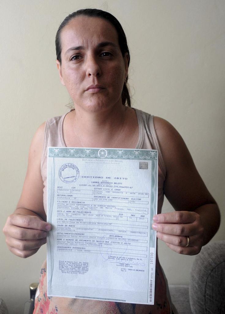 Filha de Carmem Sperandio Beloto, 67 anos, que morreu, apresenta a certidão de óbito, por dengue hemorrágica.