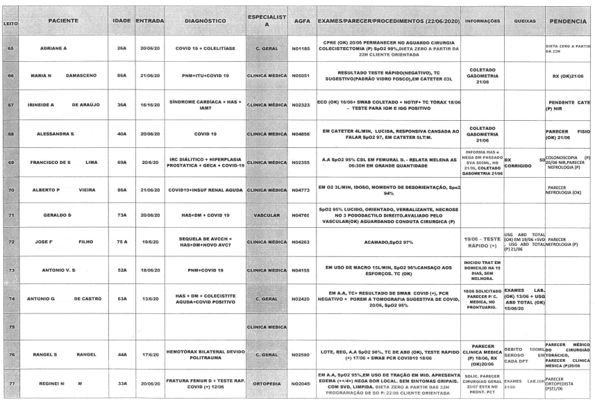 Quando comecei a atuar no Hospital Dr. Aristóteles Platão, na famosa zona leste da cidade, comecei a estudar os prontuários dos atuais e ex-pacientes que vieram a óbitos pela Covid-19.