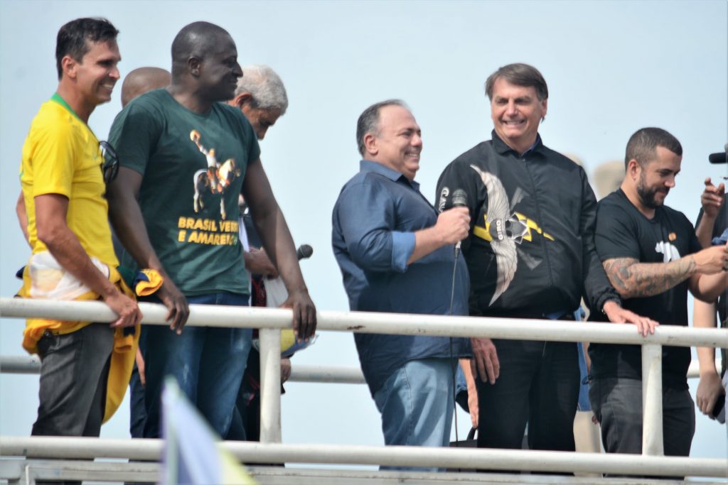 presidente Jair Bolsonaro e o ex-ministro da Saúde Eduardo Pazuello em ato organizado por motoqueiros