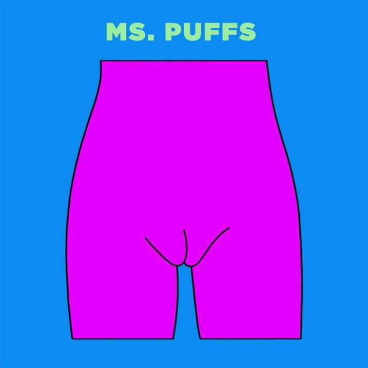 Finalmente, a Sra. Puffs é semelhante à Sra. Barbie, mas com os lábios da vagina posicionados mais abaixo no osso púbico.