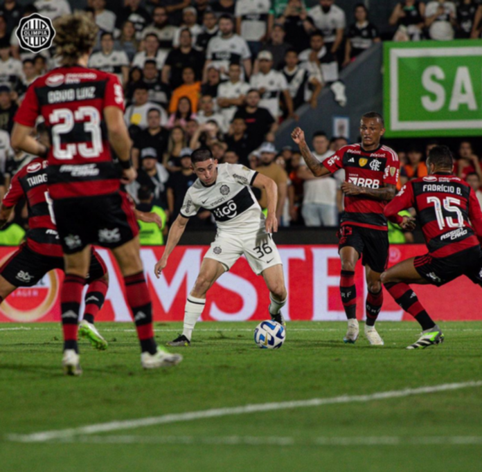 Olimpia em jogo que atropelou o Flamengo - quartas de final da Libertadores. O time paraguaio venceu por 3 a 1.