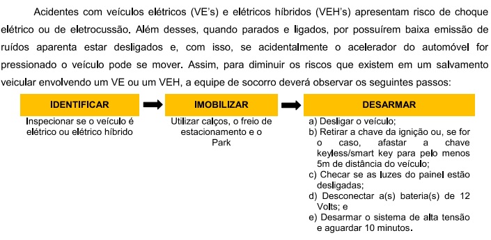 Entretanto, no Distrito Federal, o Corpo de Bombeiros, desde 2019, já trabalha com Procedimentos Operacionais Padrão (POP), normatizando os procedimentos a serem executados em acidentes envolvendo veículos elétricos e híbridos de porte leve.