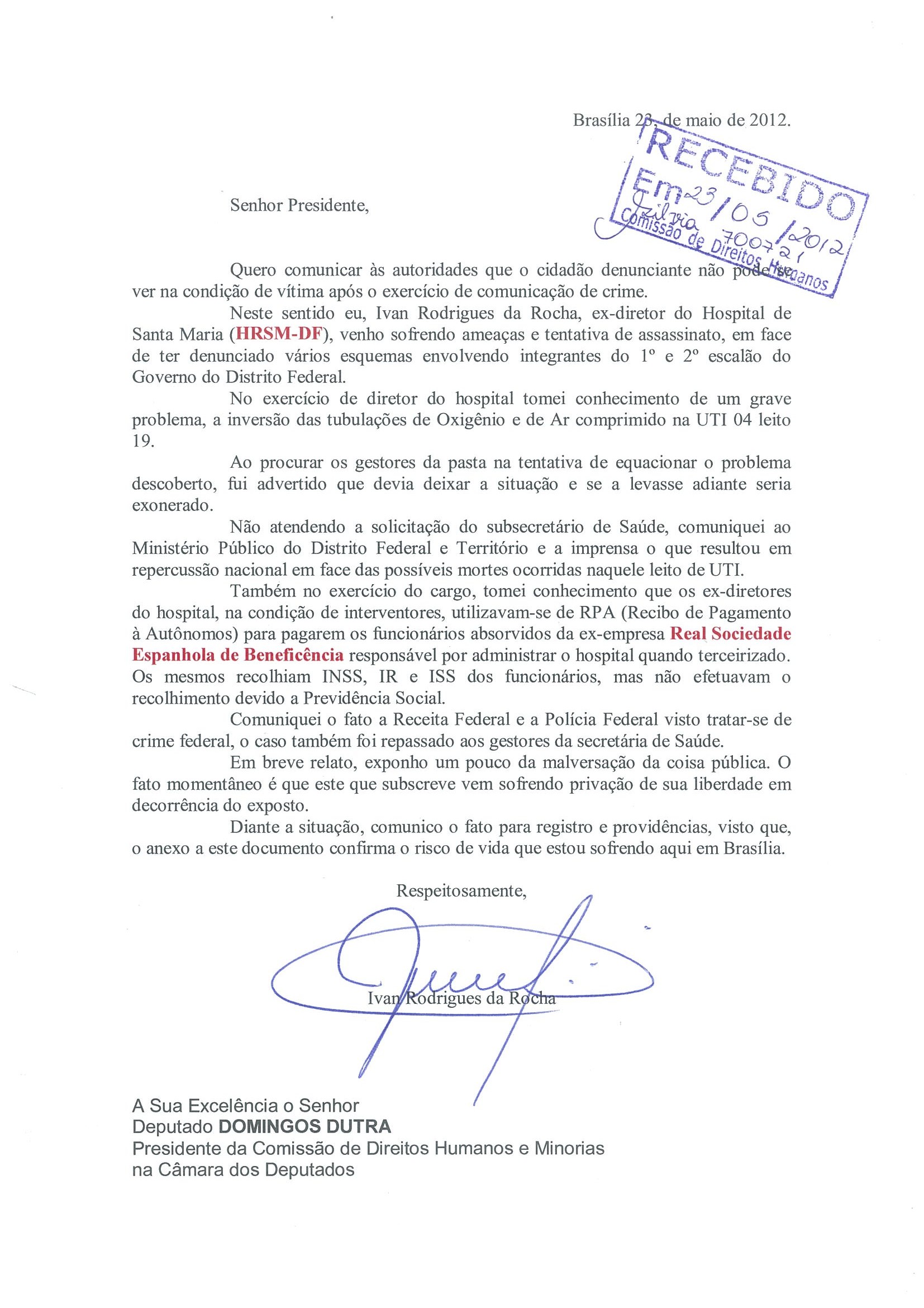 Quando digo organização criminosa me embaso em vários fatos praticados por integrantes, de alta patente, do partido dos trabalhadores já tipificado pelo STF como tal. E por fim, no relato abaixo que fiz às autoridades competentes – Ministro de Estado de Justiça e Presidente da Comissão de Direitos Humanos e Minorias da Câmara dos Deputados sobre as constantes ameaças que venho sofrendo por essa organização.