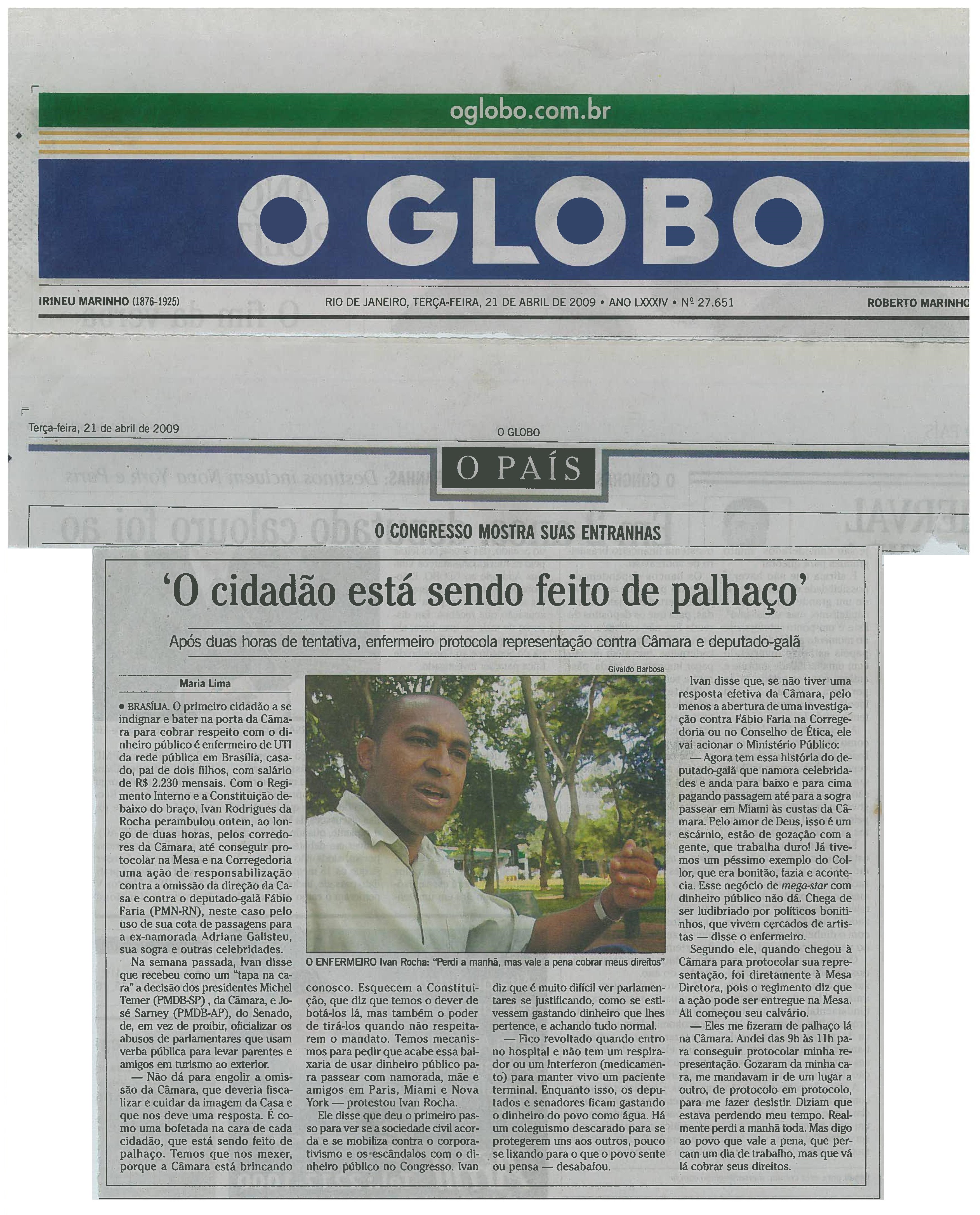 “Brasil é o país dos conchavos, do tapinha nas costas”. Joaquim Barbosa, Ministro do STF em entrevista, domingo (23), ao canal GloboNews.