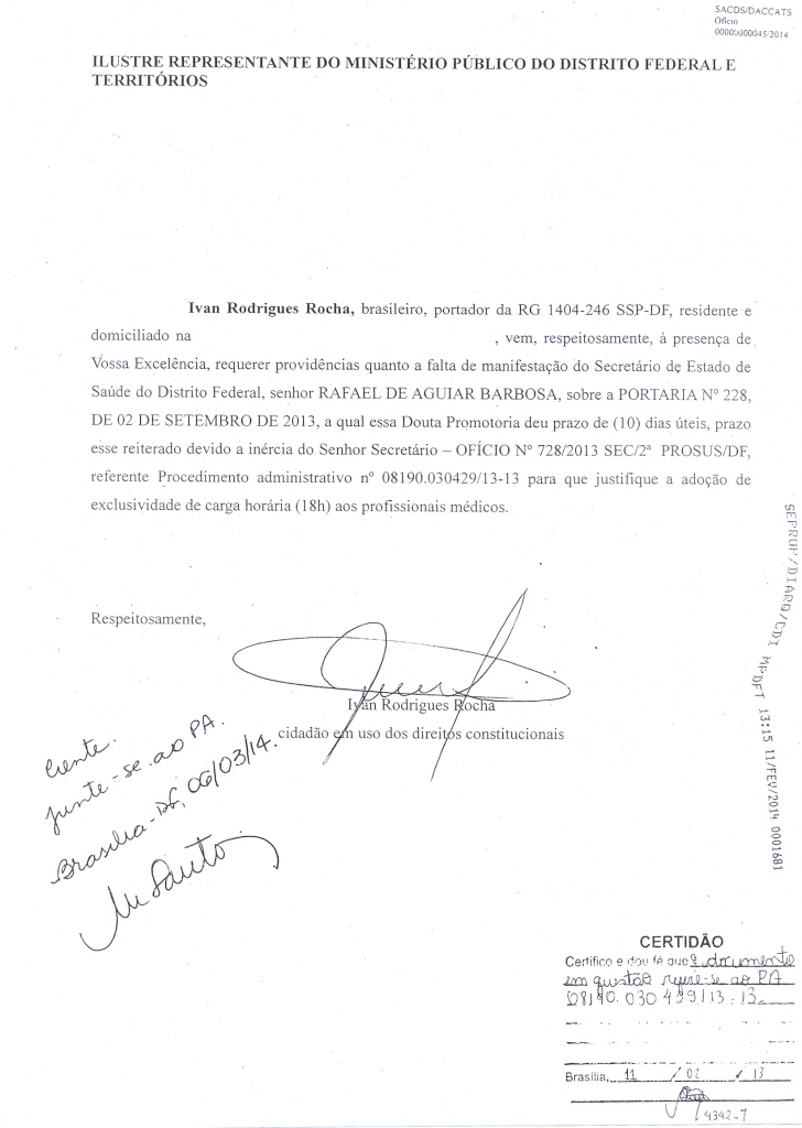 Após fazer pouco caso a reiteradas requisições do Ministério Público do Distrito Federal e Territórios, para que o gestor da saúde no DF se pronunciasse a respeito da portaria 228, a Promotoria de Justiça de Defesa da Saúde (PROSUS), resolveu instaurar procedimento administrativo (08190.030429/13-13) contra o secretário de Saúde do DF.