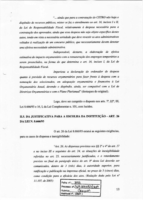 3. “Em atenção à norma do art. 31 da Lei Distrital n. 3.964/2007- a exigir seriedade nos atos administrativos voltados à realização do concurso público – faz-se imperiosa a observância ao comando do art. 16, incisos I e II, da Lei de Responsabilidade Fiscal” (Parecer n. 289/2008/PROCAD-PGDF).