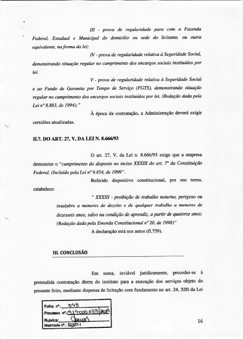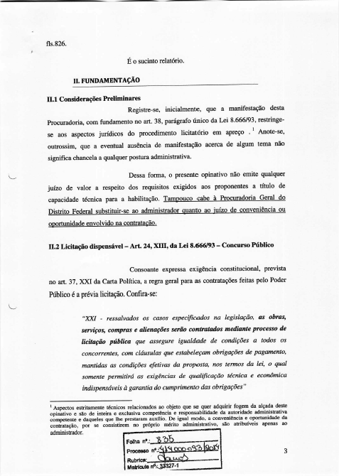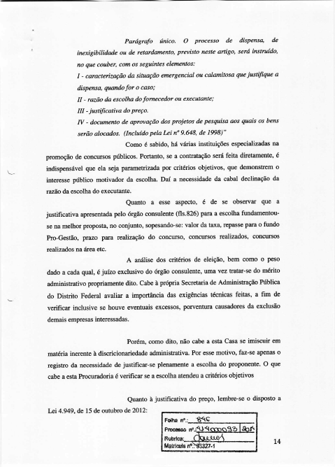 7. Parecer pela inviabilidade jurídica, de se proceder à pretendida contratação direta, para a realização do concurso público retratado na espécie, com fulcro no art. 24, XIII da Lei 8.666/93, até que sejam sanados os vícios apontados.