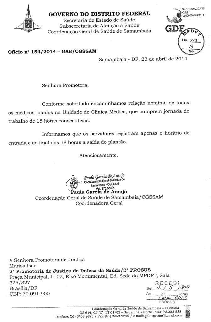 Você acredita que um médico na Secretaria de Estado de Saúde do Distrito Federal cumpre uma jornada de 18 horas integral?