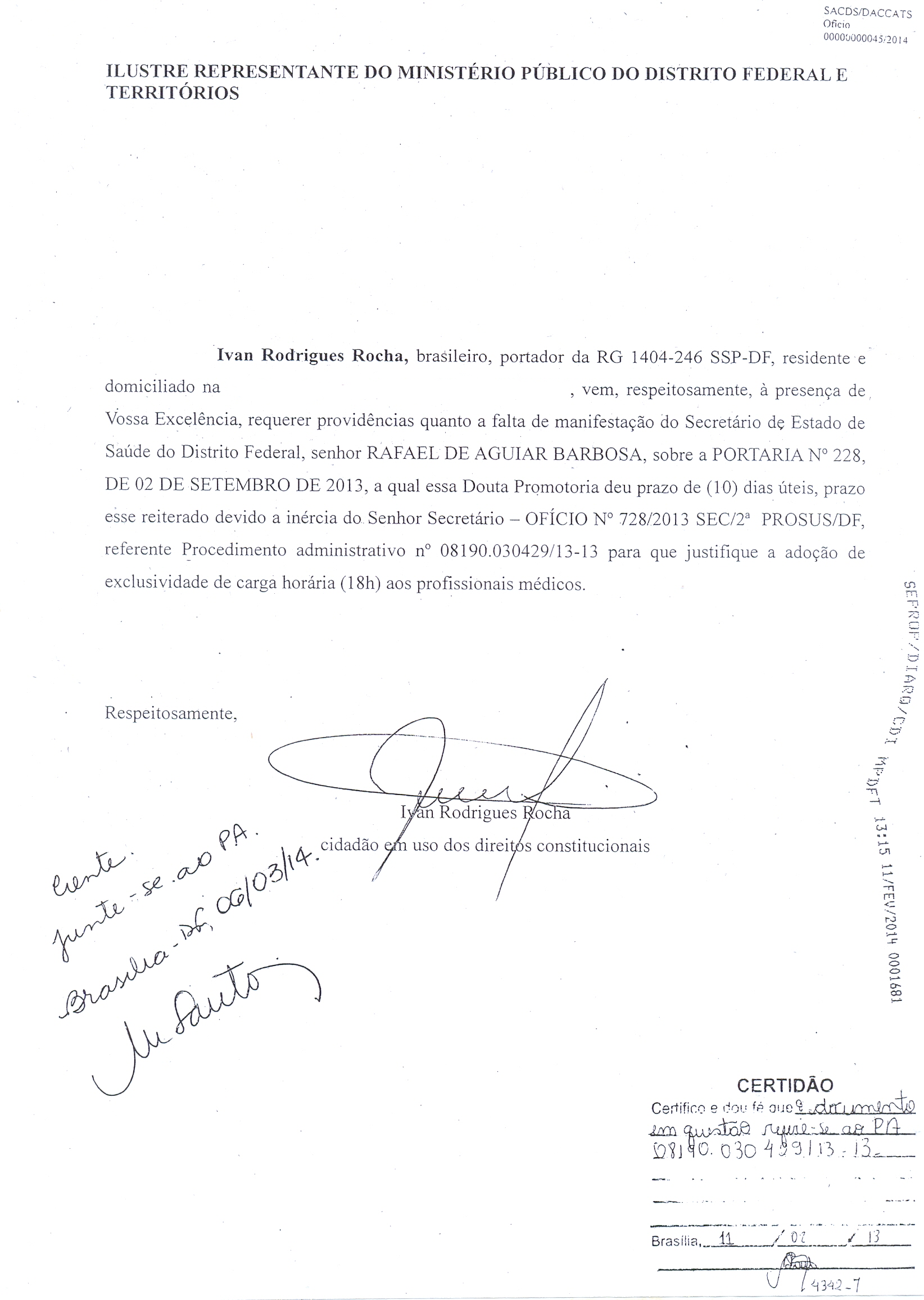 A representação que protocolei em 05/09/2013 pleiteia que todas as categorias tenham o mesmo tratamento, não só os médicos e enfermeiros. Isonomia para todos! Veja aqui. Tramitação no MP aqui .