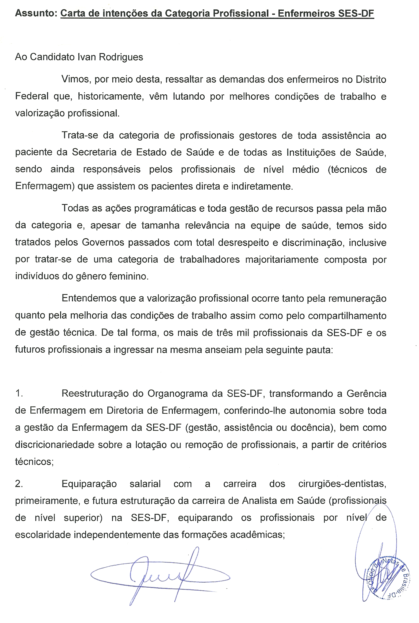 Dou publicidade ao documento registrado em cartório, mas também estou comprometido com as demandas de todas as categorias do SUS.