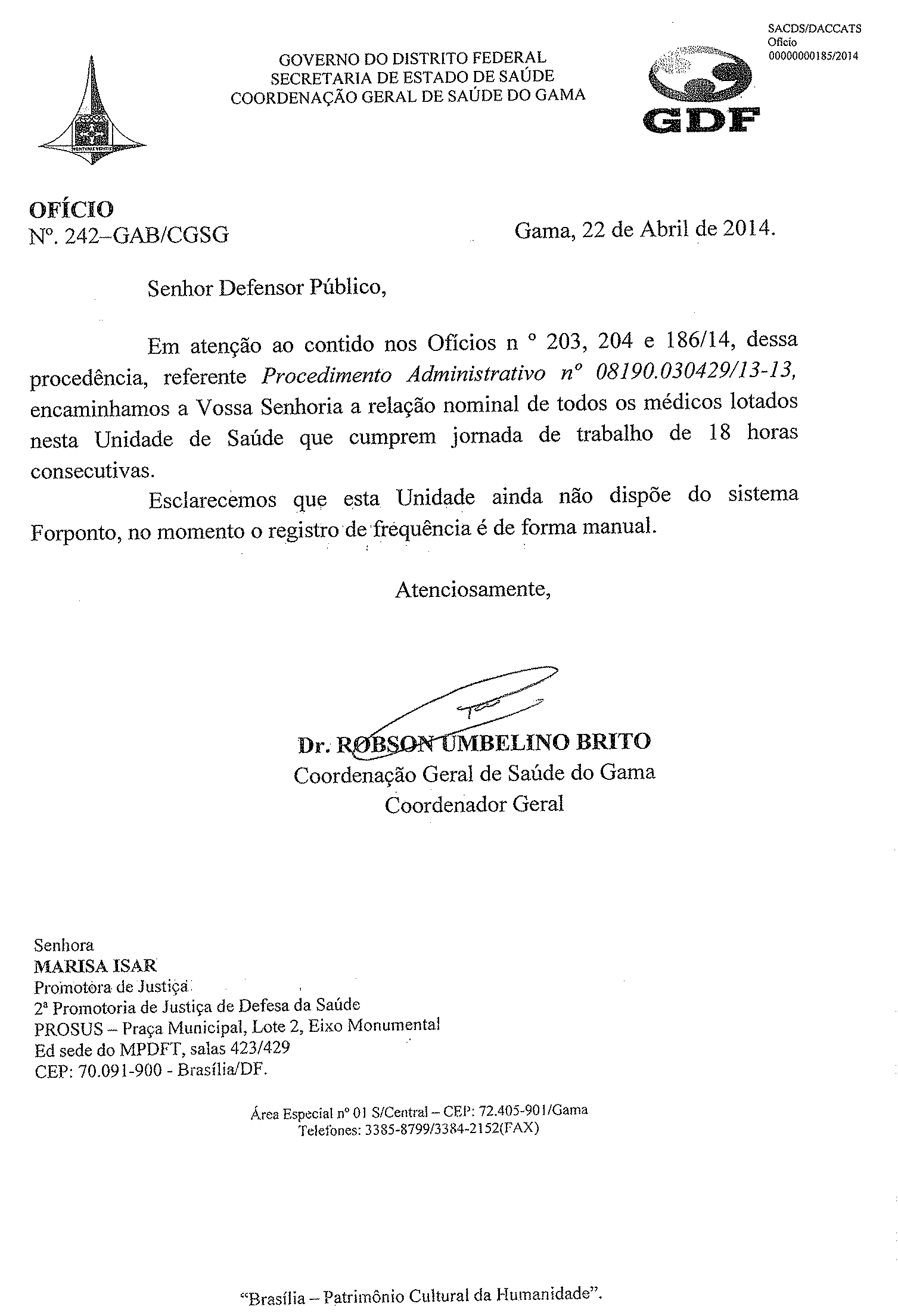 A Prosus também requisitou da SES/DF informações sobre o valor de recursos públicos utilizados para o pagamento de salários autorizado pelo art. 4º da Portaria SES/DF 313/2013 desde sua entrada em vigor, em novembro de 2013. As informações serão analisadas para eventual responsabilização dos gestores públicos que autorizaram os pagamentos em prejuízo ao atendimento à população e ao erário.