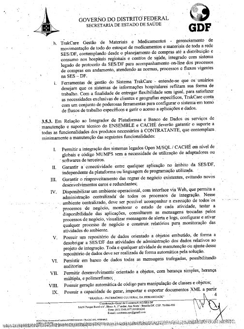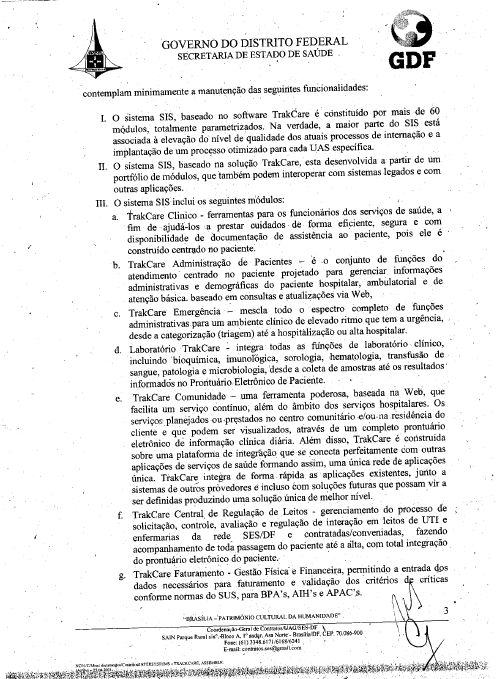 O Ministério Público do DF e Territórios (MPDFT) vem alertando desde 2009 à Secretaria de Saúde (SES) que não estenda a contração dos serviços de suporte do produto Trakcare com a empresa Intersystems do Brasil Ltda., responsável pela manutenção do Sistema Integrado de Saúde (SIS).