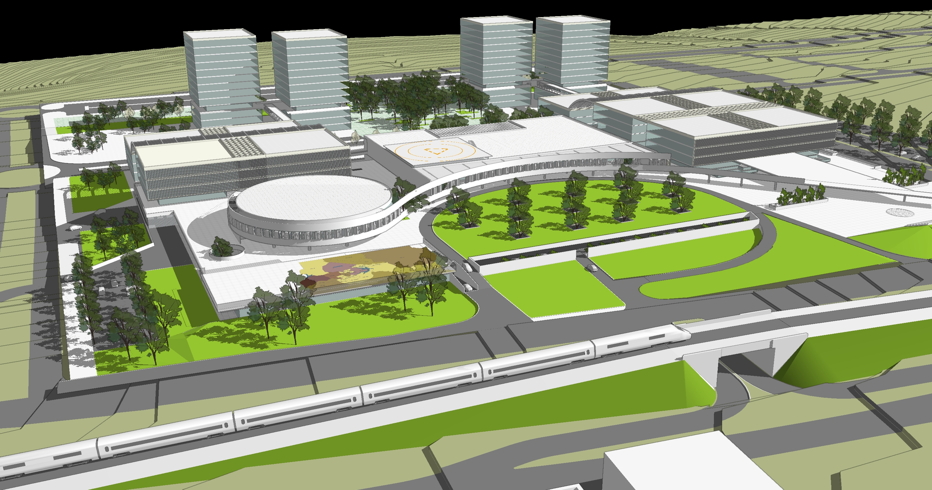 O complexo arquitetônico com os espaços necessários para as atividades de 15.000 pessoas, incluindo os espaços da Presidência, um Centro de Convenções, um Centro de Vivência e áreas de atendimento ao público.© Saúde & Direitos Sociais - Todos os Direitos Reservados