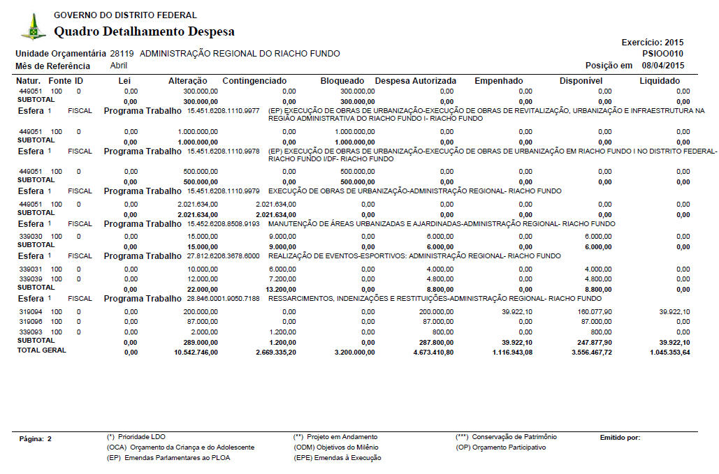 - Manutenção de áreas urbanizadas e ajardinadas – R$ 0,00;
