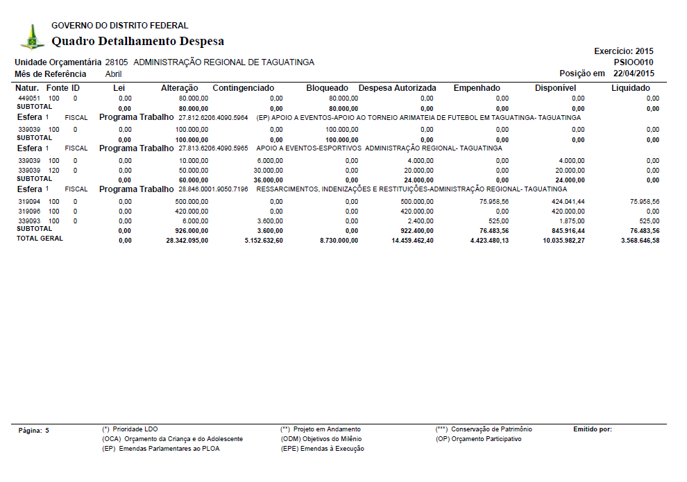 - (EP) APOIO A EVENTOS-APOIO AO TORNEIO ARIMATEIA DE FUTEBOL EM TAGUATINGA- TAGUATINGA – R$ 100.000,00 BLOQUEADOS;