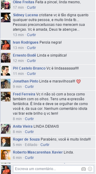 Após a série de ataques por conta da cor da pele, internautas contrários ao preconceito publicaram mensagens de apoio.