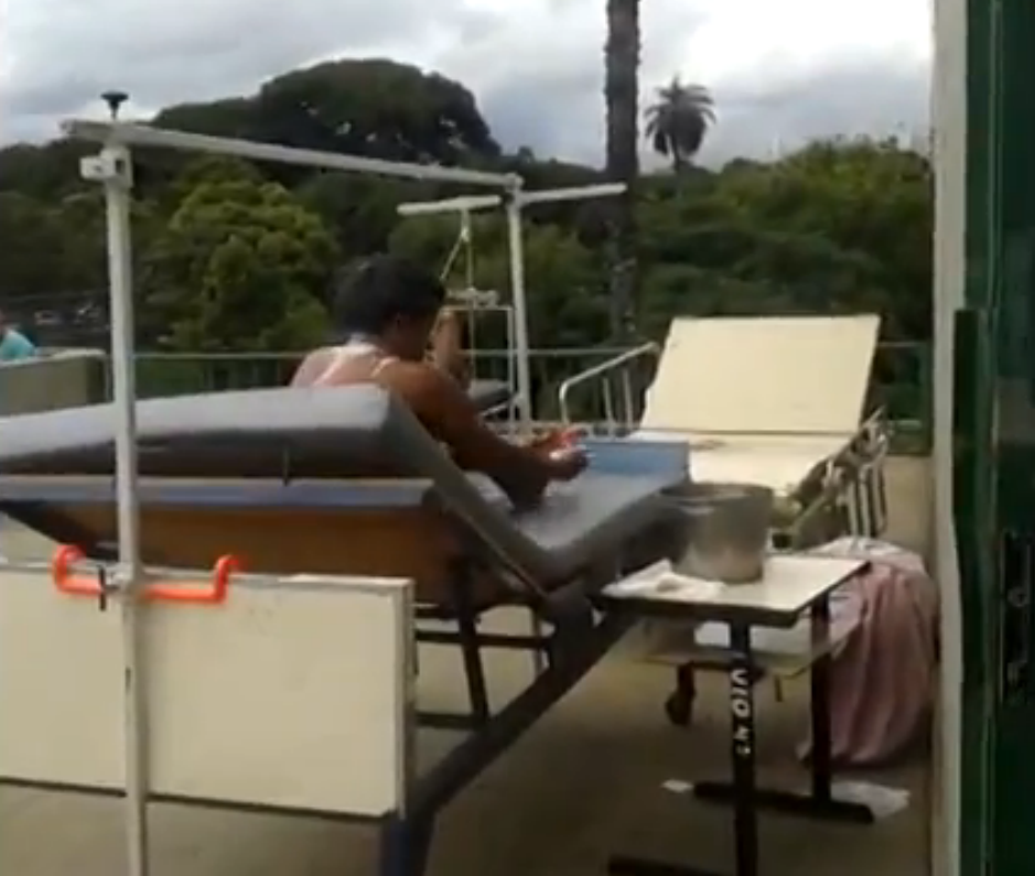 Ragner Silva acompanhava sua filha de (08) anos no Hospital Regional de Taguatinga quando resolveu ir ao terraço da ortopedia para fumar quando se deparou com um paciente em uma maca tomando banho com duas latas d’águas.
