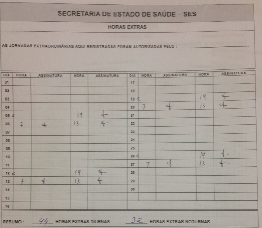 Horas extras despendidas com técnicos de enfermagem SES-DF.