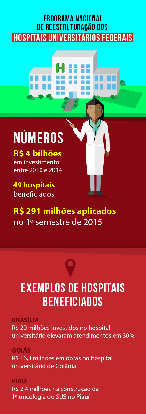 O centro médico ligado à Universidade de Brasília (UnB) é um dos beneficiados pelo Programa Nacional de Reestruturação dos Hospitais Universitários Federais (Rehuf). Desde 2010, o programa administrado pela Empresa Brasileira de Serviços Hospitalares (Ebserh) já destinou R$ 4 bilhões para melhorar a infraestrutura de 49 hospitais.