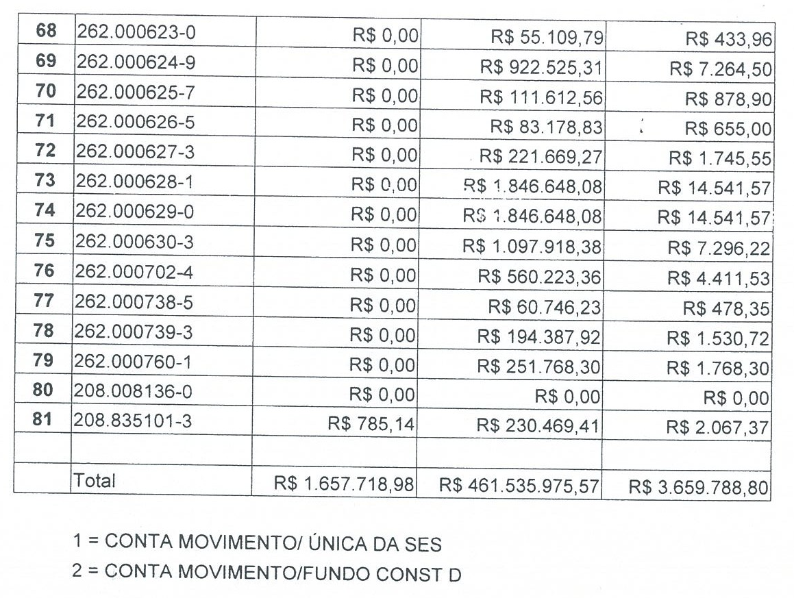 O controle é totalmente possível, pois há uma conta para cada finalidade. Embora o Fundo de Saúde da Secretaria funcione de forma arcaica e com verba engessada, a transparência destas contas seria de suma importância para dirimir quaisquer dúvidas sobre evasão de recursos de forma emergencial.