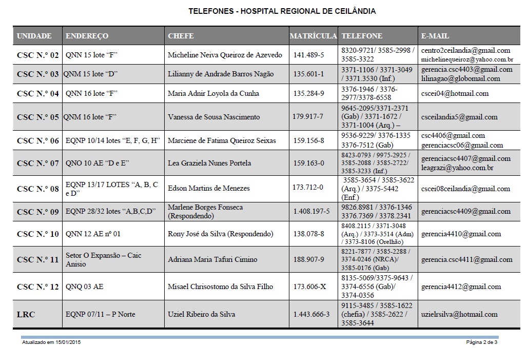 *Lista telefônica em Excel Telefones e Ramais da Coordenção Geral de Saúde de Ceilândia clique para baixar.