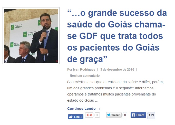 goias“Então a Saúde do GDF está deixando muito a desejar, haja vista que a Saúde no Estado de Goiás é uma M…. Só existe na propaganda do governo. Não é a toa que atualmente parte da população do estado diz: “Quero viver na propagando do Estado de Goiás“. Josy de Paula. Vídeo “Quero morar na propaganda do Governo de Goiás” clique aqui