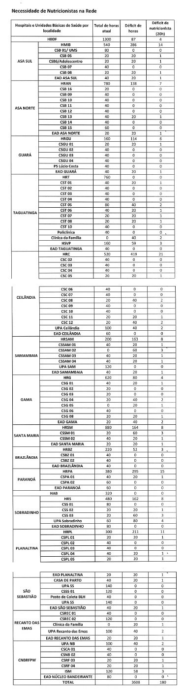 A assessoria de imprensa da SES-DF nos respondeu que até a semana que vem irá repassar-nos quantos e quando irá convocar mais aprovados do concurso para diminuir o déficit de RH nessa área.