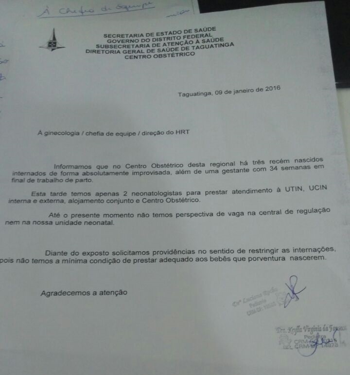 A data do documento é 09/01 de 2017, segundo uma fonte do HRT que não quis ser identificado.