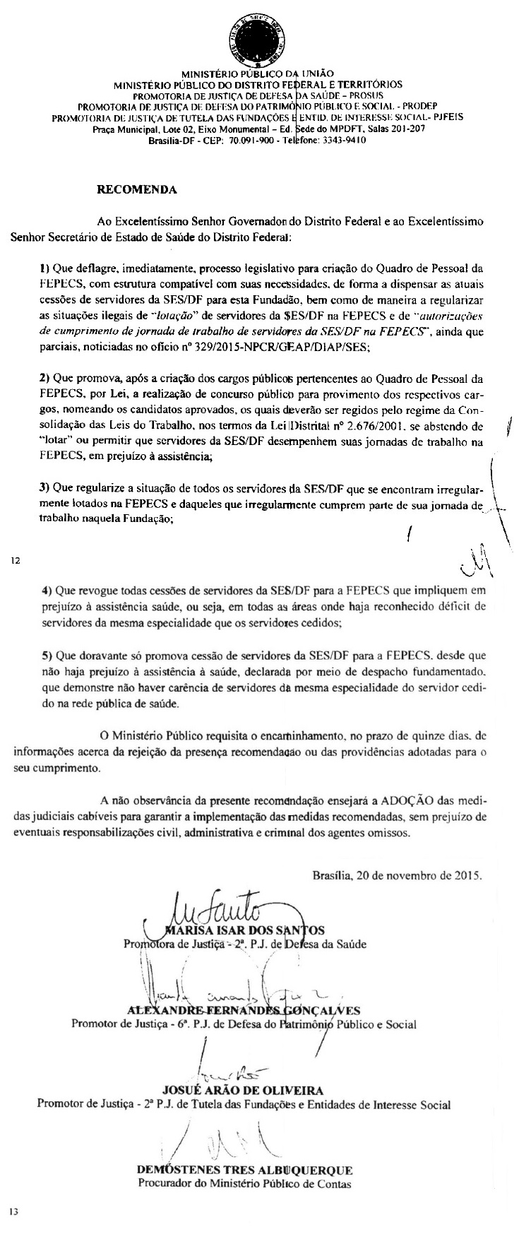 O Governo pretende deflagrar o processo de concurso ainda este ano de 2017, para cumprimento da TERMO DE RECOMENDAÇÃO N° 19/2015 – 2º PROSUS/MPDFT.