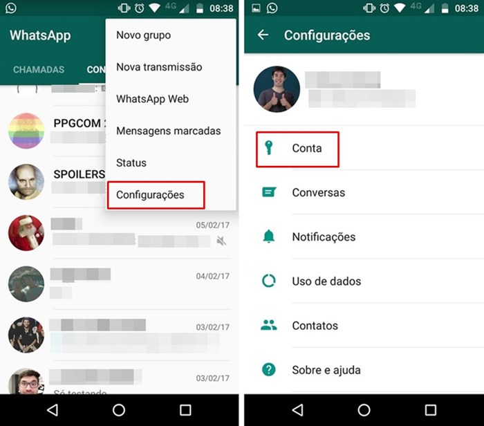 1) É muito fácil: abra o aplicativo na tela inicial, toque no botão que expande o menu (no Android é aquele ícone em forma de três pontos) e vá em “Configurações”.