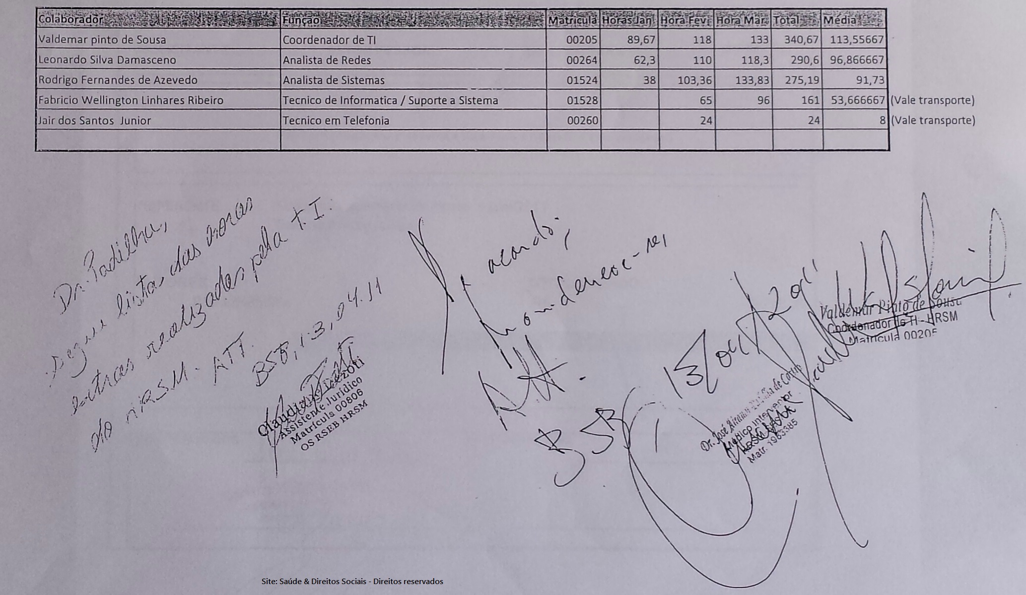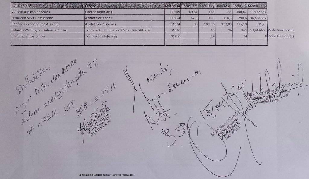 Nas muitas falhas no processo de fiscalização e controle dos serviços prestados pela Organização Social, que deveriam ser auditados pela Secretaria de Saúde, o site #SaúdeDireitosSociais&Inovações apurou pagamentos superfaturados e indevidos a uma grande quantidade de ex-funcionários.