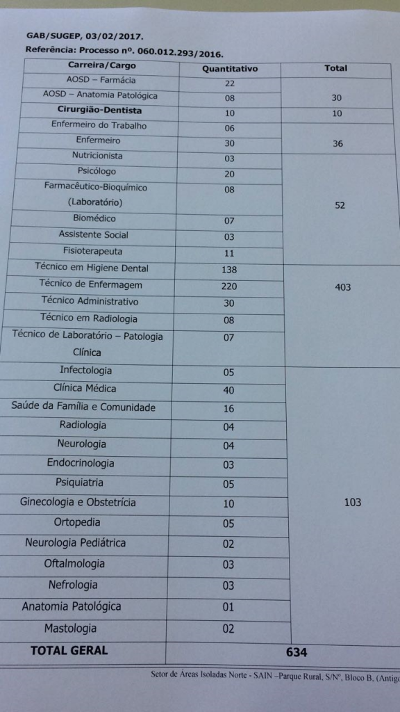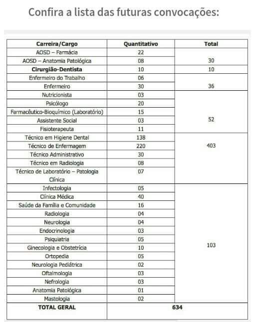 Aguardando autorização da Secretaria de Estado de Planejamento, Orçamento e Gestão, juntamente com o aval da Governança do Governo do Distrital Federal, para anúncio de possíveis convocações de (634) novos aprovados para o quadro da Secretaria de Estado de Saúde do Distrito Federal (SES-DF).