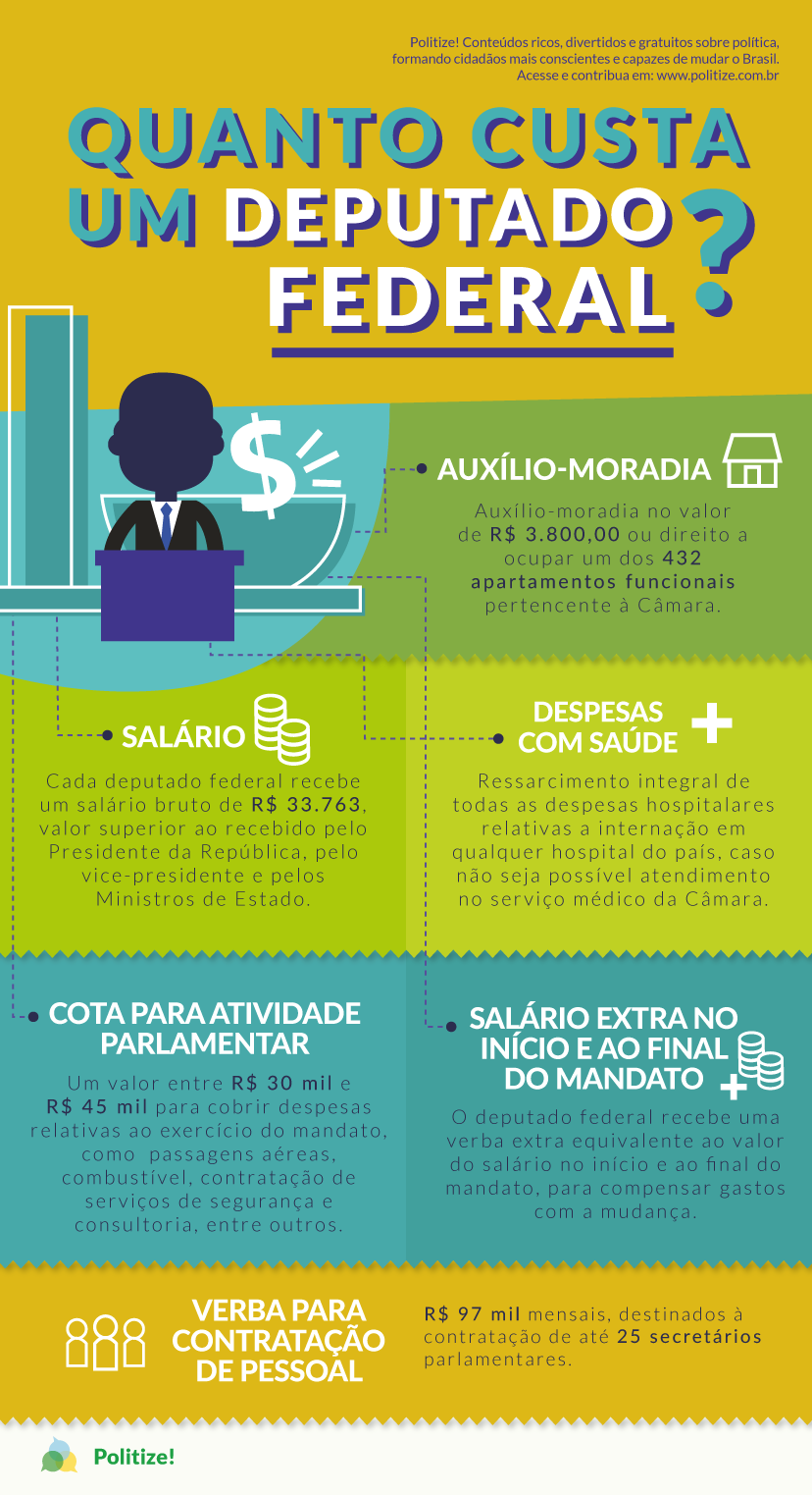 Altos salários, auxílio-moradia, verba de gabinete… muitos são os benefícios garantidos a um parlamentar brasileiro. Você tem ideia de quanto tudo isso custa aos cofres públicos? O Politize! te explica tudo o que você precisa saber sobre os privilégios assegurados a quem ocupa o disputado cargo de deputado federal.