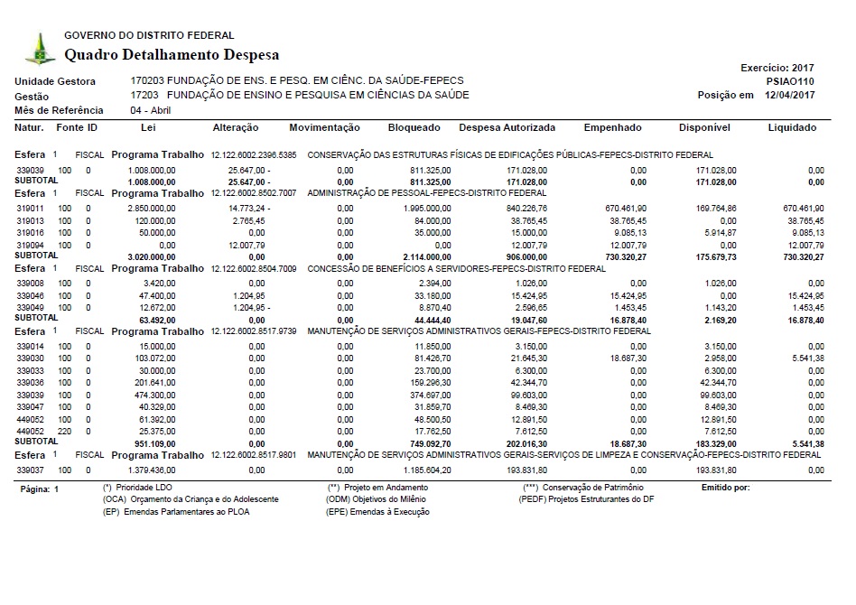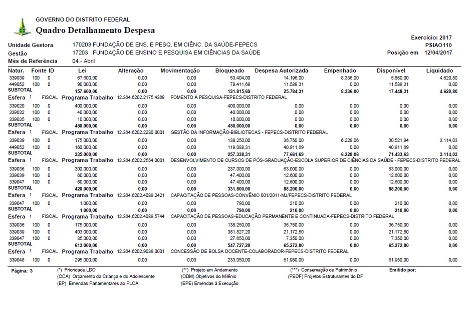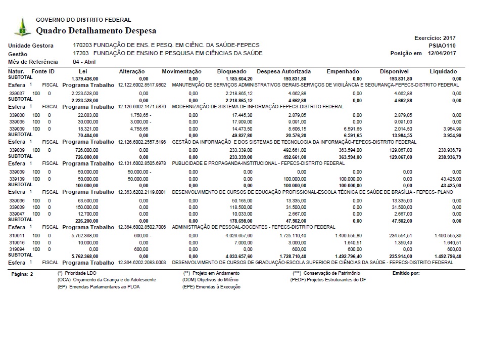 É o caso das cidades como Vicente Pires, com orçamento de R$ 10.000.000,00 em média; Núcleo Bandeirante, R$ 10.296.429,00; Riacho Fundo I, R$ 10.728.523,00 entre as mais de dez cidades pesquisadas em nosso levantamento no Quadro de Detalhamento de Despesas (QDD) do Governo do Distrito Federal.