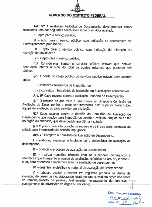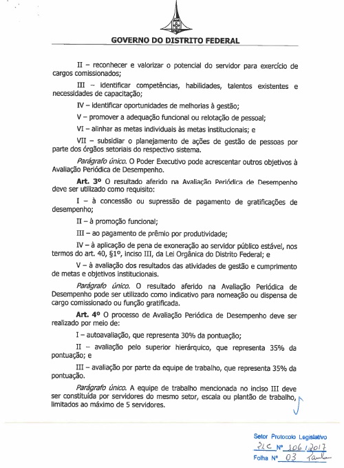 O Projeto de Lei Complementar 106/2017, enviado pelo governador Rodrigo Rollemberg à Câmara Legislativa, estabelece avaliações de aptidão para os servidores de carreira do GDF.