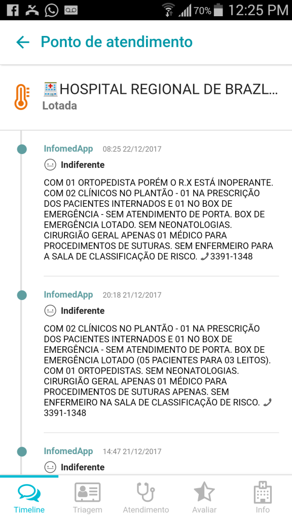 O aplicativo InfomedApp permite ao usuário encontrar Hospitais, UPAs, Clínicas da Família, Unidade Básica de Saúde.