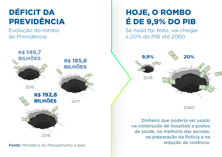 Quando se ouve falar em rombo da Previdência, a primeira pergunta que vem à cabeça é: o déficit realmente existe? A resposta é simples: não só existe como é extremamente grave. Em 2016, o déficit do Regime Geral da Previdência Social (RGPS), que atende os trabalhadores da iniciativa privada, alcançou o recorde de R$ 149,73 bilhões. Em 2017, a previsão era de que o déficit chegasse a R$ 185,8 bilhões. Para 2018, a previsão é de que esse rombo chegue a R$ 192,8 bilhões.