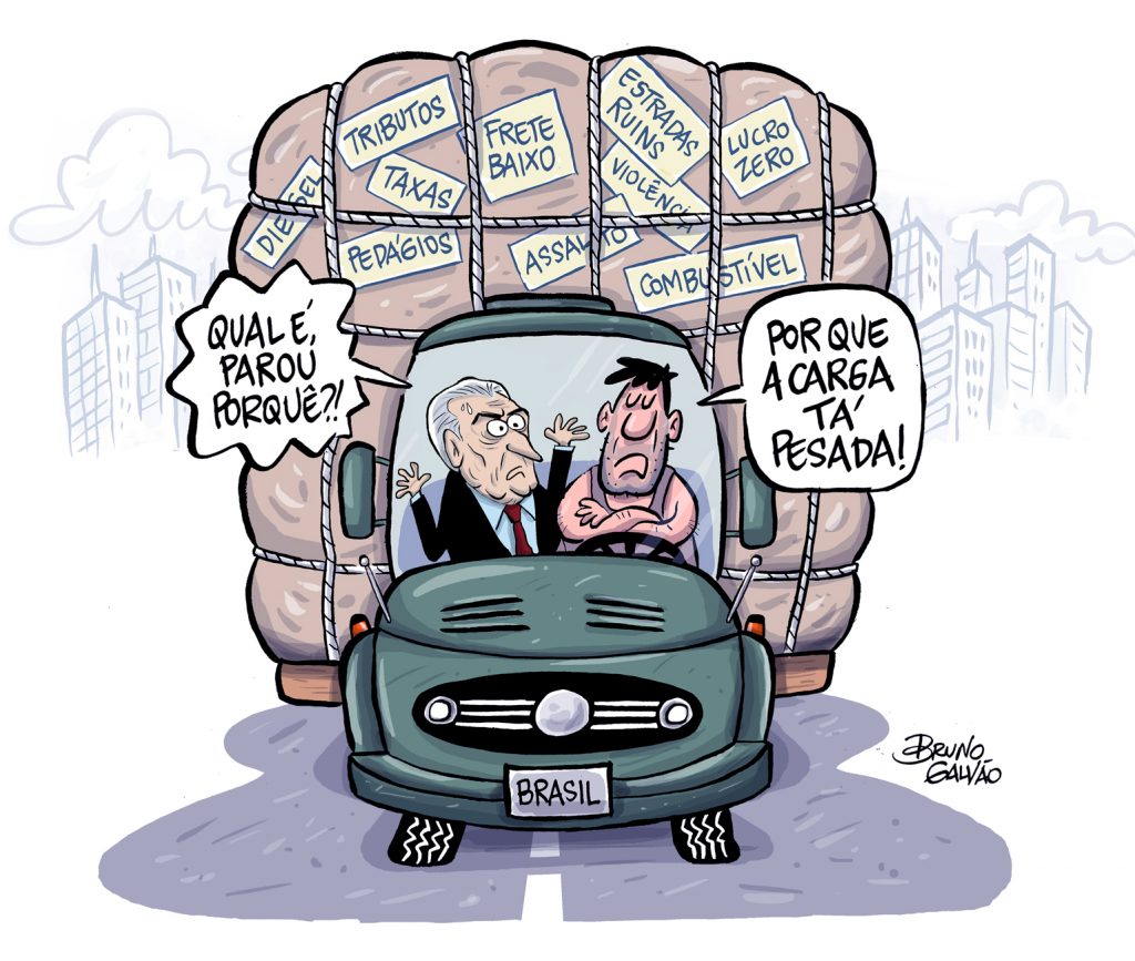 Não se trata apenas do imposto sobre o óleo diesel, como pretende fazer crer o governo. Para alavancar o País, beneficiando, sobretudo, os mais pobres, é preciso baixar as alíquotas dos impostos sobre TODOS os bens e serviços. Porque a verdade é que, no fim das contas, somos todos caminhoneiros, puxando a reboque um estado paquidérmico, palaciano e altamente corrupto e ineficiente.