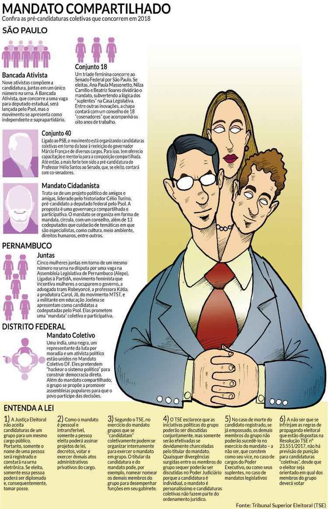 Haverá apenas um candidato – registrado – dos integrantes do grupo, de acordo com os mesmos critérios de todos os outros. A diferenciação é que será identificada como “mandato coletivo” ou “candidatura coletiva” nesta linha ideológica. Não há previsão legal para que mais de um candidato assuma o mandato.