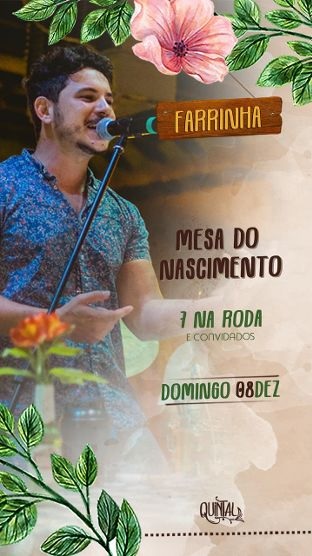 O agito fica por conta da já conhecida “Farrinha no Quintal”, com a Mesa do Nascimento que irá receber o grupo 7 na Roda com muito samba e pagode e convidados surpresas. A banda é conhecida por incluir os clássicos e composições autorais que abordam o cotidiano da capital federal em seus shows.