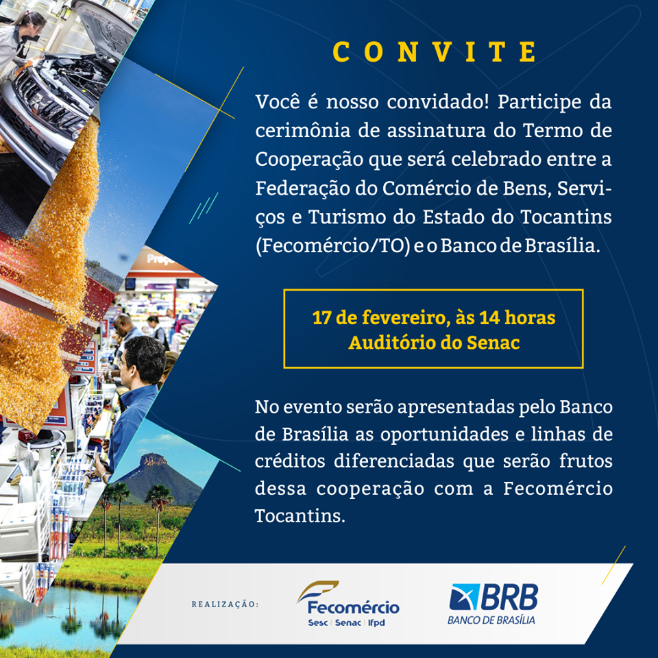 A parceria com a Fecomercio do Tocantins prevê uma maior proximidade do Banco de Brasília com as empresas dos setores de comércio, serviços e turismo do Estado. O BRB vai oferecer condições especiais em produtos e serviços financeiros. O Banco também terá um escritório de negócios na nova sede da Fecomercio, em fase de construção.