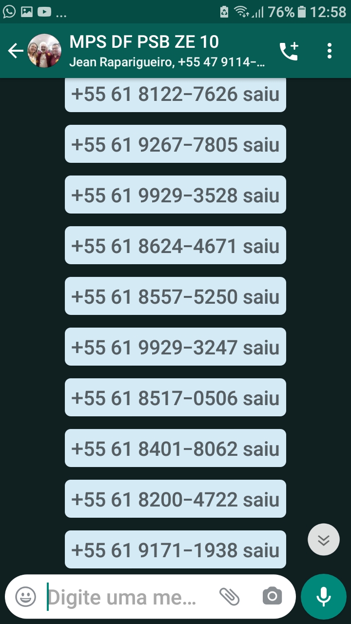 “Peço desculpas se alguém foi adicionado sem querer por algum descuido nosso. Assim compreendemos se quiser sair e desejamos boa sorte. Obrigado e um abraço,” secretário nacional, Acilino Ribeiro.