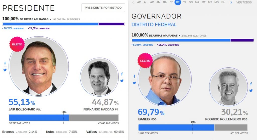 As estatísticas atuais, segundo pesquisa do Ibope, demonstram que será repetido o mesmo cenário das eleições de 2018 para presidência e governo do DF .