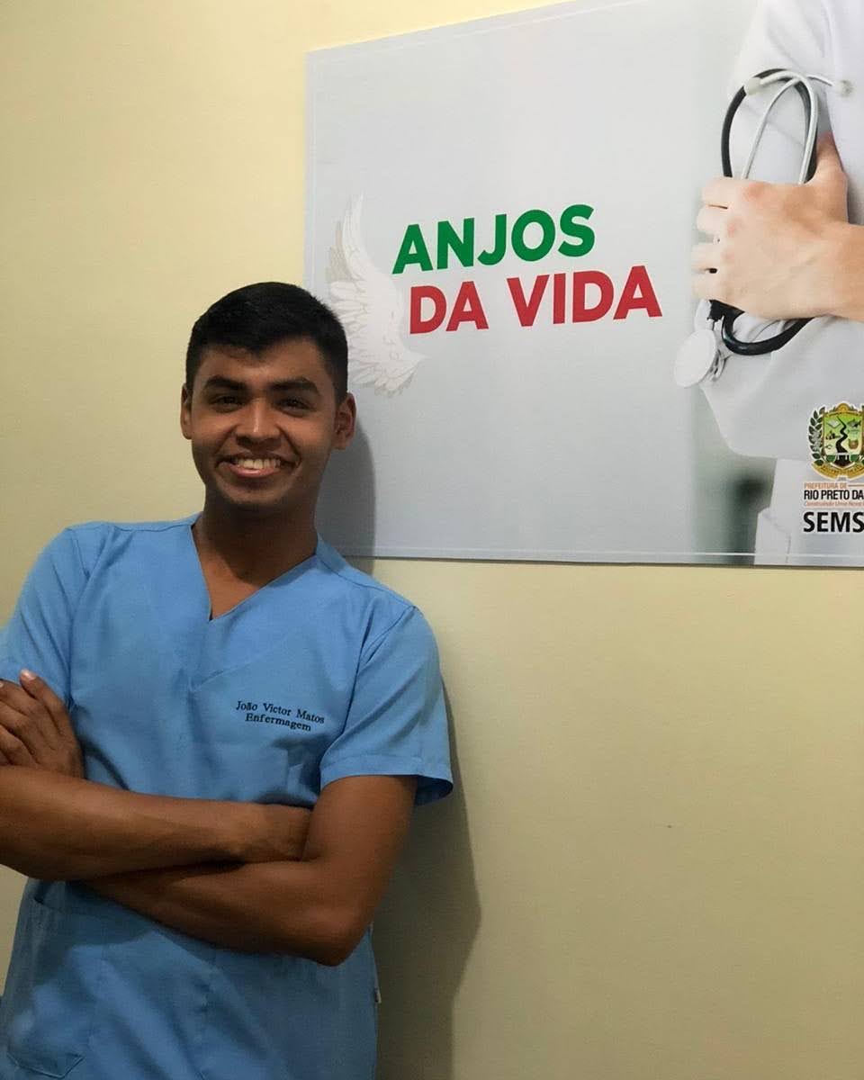 “Essas foram as palavras que mais escutei durante esses 3 meses de Campanha. Bom, me chamo João Victor Matos de Assis, nascido no dia 06 de Abril de 2000. Isso mesmo, o aniversário de 20 anos não pode ser comemorado em família por conta da Pandemia. Venho do município de Rio Preto da Eva – AM, sou Acadêmico de Enfermagem e Geografia, sou Técnico em Enfermagem com muito Orgulho e Amor a profissão que eu escolhi. Aliás, a Enfermagem que me escolheu, e assumi o compromisso de trabalhar no Combate ao Coronavírus, em um dos maiores hospitais do Amazonas, hospital este que sofria com os impactos da pandemia, especificamente na Sala de Emergência do Hospital e Pronto Socorro 28 de Agosto, lugar este que aprendi muito e, tive sim, momentos de tristezas, principalmente quando se perde um amigo da família para essa Pandemia depois de alguns ciclos de RCP. Por conta da Pandemia, tive que ficar 2 meses sem ver meus familiares. Mas essa é a Missão, somos instrumentos na Mão de Deus para Cuidar, e sim o BRASIL CONTA COMIGO.