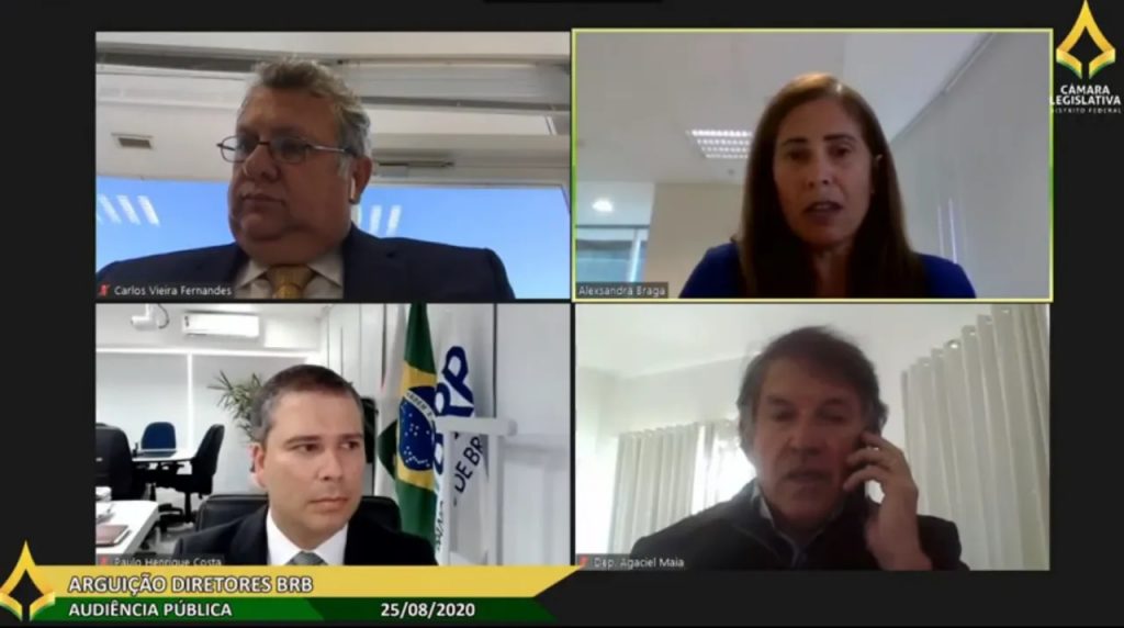 Em audiência pública remota, na tarde desta terça-feira (25), a Comissão de Economia, Orçamento e Finanças (CEOF) da Câmara Legislativa aprovou, por unanimidade, a indicação de Alexsandra Camelo Braga como diretora-presidente da BRB Distribuidora de Títulos e Valores Mobiliários S.A (DTVM) e de Carlos Antônio Vieira Fernandes para o cargo de diretor-presidente da BRB Crédito Financeiro e Investimentos S.A. A aprovação final dos nomes, indicados pelo governador Ibaneis Rocha será decidida em plenário. A sabatina durou mais de duas horas e foi transmitida pela TV Web.
