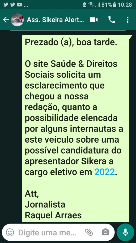 O site entrou em contato com a assessoria de Sikera para que se pronunciasse sobre os fortes ‘burburinhos’ entre os manauaras de sua candidatura, mas até o fechamento da matéria não teve retorno.